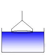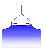 The ring is immersed into the liquid. This is the starting position of a surface tension experiment. (4)